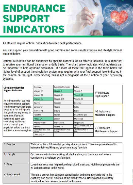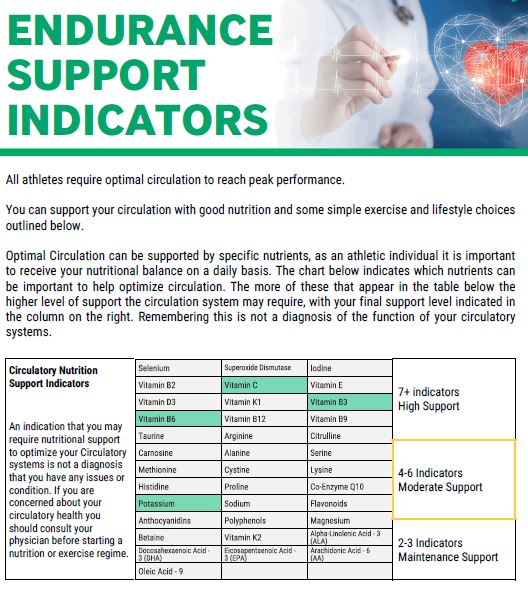 While the Cell Wellbeing report is none diagnostic, the three pages of the 30 + page report, showing the primary indicators for Endurance support and Muscle recovery are of great value to many professional sports athletes.